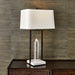 A six-sided monolith of manmade quartz reaches over a foot in height. Pair with the Lighted Plateau Lamp to experience the glow of interior bubbles.