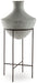 Details Made with metal, Distressed cream finish, Metal stand with espresso brown finish, Not watertight; suitable for faux/dried florals and greenery only