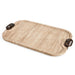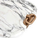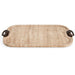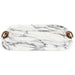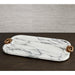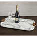 Made of Italian Arabescato marble with a honed finish, the Hippodrome Tray has a seamlessly carved raised gallery edge and two impressive light antique brass finish handles. Recommend applying a penetrating sealer annually for added protection from acidic stains and water spots that naturally occur.