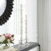 Geometric, Stacked Totems Crafted From Ivory Man-made Stone That Accurately Replicates The Look Of Thassos Marble And Is Accented By An Elegant Crystal Foot. Sizes: S-4x21x4, L-4x28x4