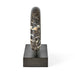 Michelangelo marble has been carved then honed to showcase the brilliant gold and white veining unique to each piece. On a bronzed steel base and sized for bookshelf or table display, this piece can stand alone but mixes easily in a grouping. True to the nature of natural materials, each piece will have unique marbling and veining throughout.