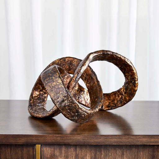 RevelationIntertwined, organically shaped loops finished in a lightly antiqued metallic gold and set on a granite base.Product FeaturesMetal 50%, Granite 50%...