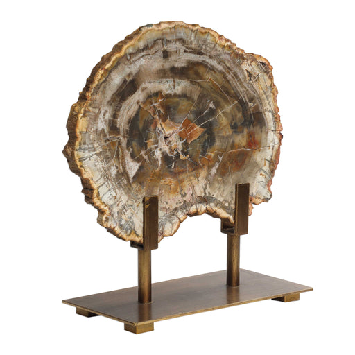 RevelationPolished slice of petrified wood displayed on a heavily antiqued bronze stand. Due to the authentic nature of the wood, each will vary in color and...
