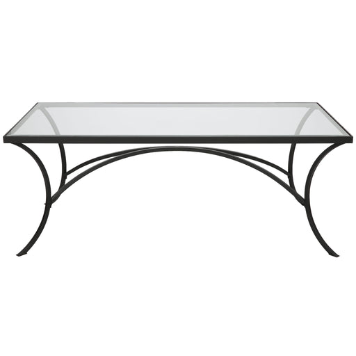UttermostGracefully Arched Hand Forged Metal Finished In Sleek Satin Black. Top Is Clear Beveled Tempered Glass.Product FeaturesDesigner: Matthew Williams A...