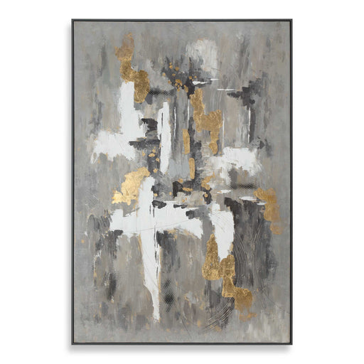 RevelationAdorn any wall with this eye-catching, hand painted abstract on canvas. Rich, metallic leaf accents are balanced by a refined, soft gray and white ...