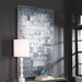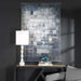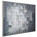 Hand painted on canvas, this urban-inspired, geometric pattern brings a modern style to a design. Lightly textured cool blue, gray, and silver hues are accented by subtle, gold leaf accents. A silver leaf gallery frame surrounds the artwork. Due to the handcrafted nature of this artwork, each piece may have subtle differences. This piece may be hung horizontal or vertical.