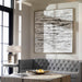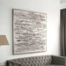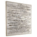 Modern, industrial style emanates from this hand painted abstract on canvas. An array of textured gray, brown, white, and off white brushstrokes are accented by black and metallic silver shades that add dimensional details. A silver gallery frame completes the artwork. Due to the handcrafted nature of this artwork, each piece may have subtle differences. This piece may be hung horizontal or vertical.
