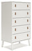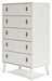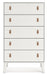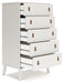 Details | Made with engineered wood (MDF/particleboard/plywood) and decorative laminate for the right balance of affordability and durability, White painted finish with subtle replicated wood grain, Faux leather drawer pulls with brass-tone rivets; light brown and gray options included, 5 smooth-gliding drawers with vinyl-wrapped sides and back, Splay legs, Safety is a top priority, clothing storage units are designed to meet the most current standard for stability, ASTM F 2057 (ASTM International), Drawers extend out to accommodate maximum access to drawer interior while maintaining safety, Assembly required | |