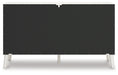 Dare to take minimalism to the max. This dresser has an air of sleek simplicity thanks to its white painted finish with subtle replicated wood grain. The magnificently mod splay legs are a compelling complement to its streamlined design. And with two sets of faux leather drawer pulls that allow you to customize the dresser to suit your space, there's no doubt about it: This contemporary piece is sure to become a classic.