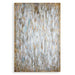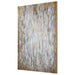 Sophisticated In Style, This Hand Painted Abstract On Canvas Completes Any Contemporary Or Modern Space. Shades Of White, Blue And Bronze Are Accented By Metallic Gold Leaf Details That Create A Stunning Work Of Art. The Canvas Is Stretched And Attached To A Wooden Frame. A Petite, Gold Leaf Gallery Frame Encases Each Piece. Due To The Handcrafted Nature Of This Artwork, Each Piece May Have Subtle Differences. This Piece May Be Hung Horizontal Or Vertical.