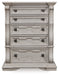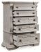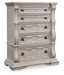 Details | Made with hardwood solids, oak and ash swirl veneers, MDF substrates and cast resin components, Antiqued white finish, Hardware with antiqued bronze-tone finish, 5 smooth-gliding drawers with fully finished interiors, English dovetail construction and heavy-duty ball-bearing side glides (top drawer felt lined) | |