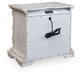 Details Made with hardwood solids, oak and ash swirl veneers, MDF substrates and cast resin components, Antiqued white finish, Hardware with antiqued bronze-tone finish, 2 smooth-gliding drawers with fully finished interiors, English dovetail construction and heavy-duty ball-bearing side glides (top drawer felt lined), Pull-out tray behind bottom drawer, 110V power supply with USB-A and USB-C charging ports, Power cord included; UL Listed