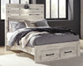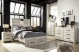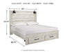 Details | Includes headboard, footboard and rails, Made of engineered wood (MDF/particleboard) and decorative laminate, Wispy white finish over replicated oak grain with authentic touch, Large-scale hardware with dark finish, 2 decorative sconce lights, LED with 3 AA batteries, 2 smooth-gliding storage drawers, 2 slim-profile USB charging ports, Power cord included; UL-listed, Foundation/box spring required, sold separately, Mattress available, sold separately, Assembly required, Bed is not compatible with an adjustable base | |