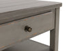 Details Made with solid hardwood and MDF substrates, Distressed antiqued French gray finish, 2 smooth-gliding drawers with dovetail construction and metal ball-bearing side glides, Open lower shelf, Assembly required