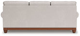 Details Corner-blocked frame, Attached back and reversible seat cushions, High-resiliency foam cushions wrapped in poly fiber, Accent pillows included, Pillows with soft polyfill, Polyester upholstery, Decorative turned legs with faux wood finish, Platform foundation system resists sagging 3x better than spring system after 20,000 testing cycles by providing more even support, Smooth platform foundation maintains tight, wrinkle-free look without dips or sags that can occur over time with sinuous spring foundations