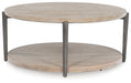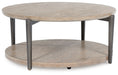 Merging industrial and contemporary elements, this coffee table turns display space into an art form. The whitish brown wood-tone finish is right on trend, while contrasting painted metallic legs offer a modern touch of stripped-back beauty. With its streamlined design, this table proves that less is more.
