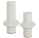 The cool, space-age shapes of these vessels are giving us futuristic vibes. Created from ivory man-made stone, that accurately replicates the look of Thassos marble. The brass-finished base provides a light-reflecting detail. The varying vase heights create their own beautiful display or can be used to house floral stems. Glass inserts included. Sizes: S-9x13x9, L-9x17x9
