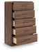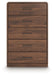 Details Made with MDF substrates and decorative paper laminate, Replicated walnut wood grain with high-low contrast for a rich brown wood tone, Hardware with black finish, 5 smooth-gliding drawers with English dovetail construction and center mount drawer guides, Drawer interiors lined with decorative wood grain paper laminate
