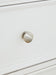 Details | Made with hardwood solids and MDF substrate, White painted finish, Round metal drawer knobs with satin nickel-tone finish, Tapered feet, Framed drawer fronts, 5 smooth-gliding drawers with dovetail construction and ball-bearing side glides | |