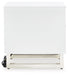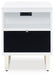 Details | Made with MDF substrates, High-gloss white finish, Black acrylic laminate drawer front, 1 smooth-gliding drawer, Open display shelf, Legs with chrome-tone finish, 110V power supply with USB-A and USB-C charging ports, Power cord included; UL Listed, Assembly required | |