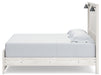 Cool, clean and casually modern. This queen panel bed’s white rustic finish sets the tone for your calming sanctuary. Matte black sconce lights and an abstract design on the headboard bring a fresh look to the bed’s simply stunning profile.