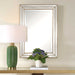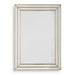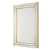 This frame features mirror inlays, separated by thin, grooved framing strips, finished in a metallic gold with light antiquing. The center mirror has a 1" bevel. This frame may be hung either vertically or horizontally.