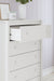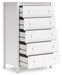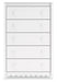 Details | Made with engineered wood (MDF/particleboard/plywood) and decorative laminate for the right balance of affordability and durability, Decorative laminate replicates natural or man-made material surfaces with consistent color, pattern and texture, Matte white finish, 5 smooth-gliding drawers with vinyl-wrapped sides and back for durability, Safety is a top priority, clothing storage units are designed to meet the most current standard for stability, ASTM F 2057 (ASTM International), Drawers extend out to accommodate maximum access to drawer interior while maintaining safety, Assembly required | |