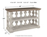 With its richly rustic finish and textural mix, this sofa table goes to town on bygone beauty. Its distressed two-tone treatment blends a weathered gray with vintage white for an utterly charming effect. Balustrade-style planks supporting the top create an eye-catching look that’s anything but ordinary.