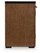 Double down on casual chic with the two-tone look of this credenza. With its warm brown and matte black finishes, it reflects your eye for modern design. The trend-right slatted styling on its doors brings added charm. And with the credenza's adjustable shelves, open storage and accessories drawer, keeping office essentials organized is a breeze.