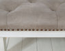 Details Made of wood, veneer and engineered wood, Light brown faux leather upholstery, Distressed whitewash finish, Corner-blocked frame, Firmly cushioned, High-resiliency foam cushion wrapped in thick poly fiber, Nailhead trim, Assembly required