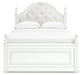 Fit for a princess. This full upholstered panel storage bed’s crisp matte white finish pairs with charming ornate beading details and sumptuous button-tufted upholstery—perfect for your girly girl. Spacious storage drawers neatly tuck away bedroom essentials, while decorative ball tops and multicolored LED lighting in the headboard are the crowning touches to make your little one feel like royalty.