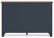 Details | Made with hardwood solids, mindi wood veneer and MDF substrates, Two-tone finish features a dark slate blue with a light brown wood-tone top, Nickel-tone metal knobs, 6 drawers with fully finished interior, dovetail construction and heavy duty ball-bearing side glides | |