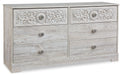 Details Made with engineered wood (MDF/particleboard/plywood) and decorative laminate for the right balance of affordability and durability, Whitewash replicated worn-through paint with authentic touch, Hardware features a worn-through painted effect, 6 smooth-gliding drawers with vinyl-wrapped sides and back, Safety is a top priority, clothing storage units are designed to meet the most current standard for stability, ASTM F 2057 (ASTM International), Drawers extend out to accommodate maximum access to drawer interior while maintaining safety, Assembly required