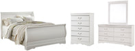 Anarasia Queen Sleigh Bed with Mirrored Dresser and Chest