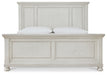 Details | Includes headboard, footboard and rails, Made with select oak veneer, engineered wood, solid wood components and cast resin components, Antiqued white finish with grain texture, Headboard can attach to metal bed frames, Foundation/box spring required, sold separately , Mattress available, sold separately , Assembly required, Bed is compatible with an adjustable base | |