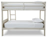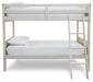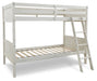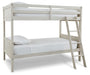 Details | Includes twin bunk bed panels and twin ladder/rails/slats, Made with hardwood solids, birch veneer and MDF substrate, Antiqued white finish with grain texture, Top bunk with protective side rails, Sturdy ladder leads to top bunk, The Consumer Product Safety Commission states top bunks not be used for children under 6 years of age, Bed does not require additional foundation/box spring; accommodates most zero clearance adjustable bases, Mattresses available, sold separately?, Assembly required | |