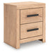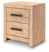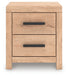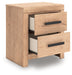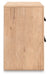 This nightstand brings a touch of modern farmhouse charm to your home. Its light oak finish and clean lines have a fresh, airy feel, effortlessly creating an inviting atmosphere for a restful night’s sleep. Spacious drawers with large black handles provide plenty of storage for all your nighttime essentials.