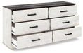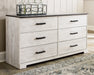 Details | Made with engineered wood (MDF/particleboard/plywood) and decorative laminate for the right balance of affordability and durability, Whitewash replicated worn through paint, Top with rustic gray planked replicated oak grain with authentic touch, Pewter-tone pulls, 6 smooth-gliding drawers, Vinyl wrapped drawer sides and back for extra durability, Safety is a top priority, clothing storage units are designed to meet the most current standard for stability, ASTM F 2057 (ASTM International), Drawers extend out to accommodate maximum access to drawer interior while maintaining safety, Assembly required | |