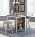 This clever counter height table and bar stool set invites you to raise the bar on small space living. An inspired choice for coastal chic or modern farmhouse settings, this clean-lined, simply striking set doubles the charm with brown tone plank effect tops, paired with grayish white bases with rub through effect for timeworn appeal. The table’s built-in open shelves make the most of every inch of space.