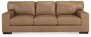 Details 5730238: Corner-blocked frame, Attached back and loose seat cushions, High-resiliency foam cushions wrapped in poly fiber, Genuine leather covers inside areas such as the back, seat and arm cushions; skillfully matched faux leather covers the remaining areas, Top grain leather simulating a wax oil pullup with cracked effect, Lightly buffed and embossed with clear, protective finish to prevent scratches, Due to its natural origin, real leather can show individual characteristics such as healed scars, growth marks, grain variation and shade variation, Natural variations make each hide unique and do not detract from the wearing qualities of leather, Exposed feet with faux wood finish, Platform foundation system resists sagging 3x better than spring system after 20,000 testing cycles by providing more even support, Smooth platform foundation maintains tight, wrinkle-free look without dips or sags that can occur over time with sinuous spring foundations, 5730235: Corner-blocked frame, Attached back and loose seat cushions, High-resiliency foam cushions wrapped in poly fiber, Genuine leather covers inside areas such as the back, seat and arm cushions; skillfully matched faux leather covers the remaining areas, Top grain leather simulating a wax oil pullup with cracked effect, Lightly buffed and embossed with clear, protective finish to prevent scratches, Due to its natural origin, real leather can show individual characteristics such as healed scars, growth marks, grain variation and shade variation, Natural variations make each hide unique and do not detract from the wearing qualities of leather, Exposed feet with faux wood finish, Platform foundation system resists sagging 3x better than spring system after 20,000 testing cycles by providing more even support, Smooth platform foundation maintains tight, wrinkle-free look without dips or sags that can occur over time with sinuous spring foundations, 5730223: Corner-blocked frame, Attached back and loose seat cushions, High-resiliency foam cushions wrapped in poly fiber, Genuine leather covers inside areas such as the back, seat and arm cushions; skillfully matched faux leather covers the remaining areas, Top grain leather simulating a wax oil pullup with cracked effect, Lightly buffed and embossed with clear, protective finish to prevent scratches, Due to its natural origin, real leather can show individual characteristics such as healed scars, growth marks, grain variation and shade variation, Natural variations make each hide unique and do not detract from the wearing qualities of leather, Exposed feet with faux wood finish, Platform foundation system resists sagging 3x better than spring system after 20,000 testing cycles by providing more even support, Smooth platform foundation maintains tight, wrinkle-free look without dips or sags that can occur over time with sinuous spring foundations, 5730214: Corner-blocked frame, Firmly cushioned, High-quality foam cushion wrapped in poly fiber, 100% top grain leather covers the cushion top; skillfully matched faux leather covers the remaining areas, Top grain leather simulating a wax oil pullup with cracked effect, Lightly buffed and embossed with clear, protective finish to prevent scratches, Due to its natural origin, real leather can show individual characteristics such as healed scars, growth marks, grain variation and shade variation, Natural variations make each hide unique and do not detract from the wearing qualities of leather, Exposed feet with faux wood finish,