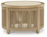 Kick back and relax with the contemporary vibe of this outdoor coffee table. Its rope detailing brings artistic flair, while the naturally beautiful eucalyptus wood provides must-have durability. And for added style and function, a cleanable stone-look tabletop completes the piece.