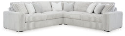 Details Includes 3 pieces: left-arm facing sofa, wedge and right-arm facing sofa, "Left-arm" and "right-arm" describe the position of the arm when you face the piece, Corner-blocked frame, Loose reversible seat and back cushions, High-density foam cushions wrapped in feather-fiber blend jacket, Accent pillows included, Pillows with feather-fiber blend, Polyester upholstery, Exposed feet with faux wood finish, Platform foundation system resists sagging 3x better than spring system after 20,000 testing cycles by providing more even support, Smooth platform foundation maintains tight, wrinkle-free look without dips or sags that can occur over time with sinuous spring foundations