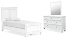 | Details | B680B6: Includes twin panel headboard, footboard and rails, Made with hardwood solids and MDF substrate, White painted finish, Tapered feet, Foundation/box spring required, sold separately, Mattress available, sold separately, Assembly required, Bed is compatible with an adjustable base, B680B1: Includes dresser and mirror, Made with hardwood solids and MDF substrate, White painted finish, 7 smooth-gliding drawers with dovetail construction and ball-bearing side glides, Round metal drawer knobs with satin nickel-tone finish, Tapered feet, Mirror attaches to back of dresser, Assembly required, | |