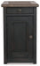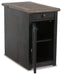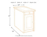 Details Made of solid and engineered wood and veneers, Dark bronze-tone hardware, 1 door; 1 fixed shelf, Pull-out tray with 2 cup holders, AC power supply with 2 USB charging ports, Assembly required