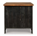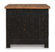 Details Made with pine veneers, pine wood and engineered wood, Two-tone distressed finish (light brown top and rustic vintage black base), Double door cabinet with metal grills and hardware, Center shelf, Assembly required